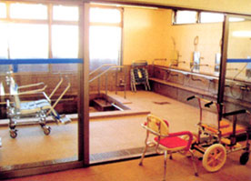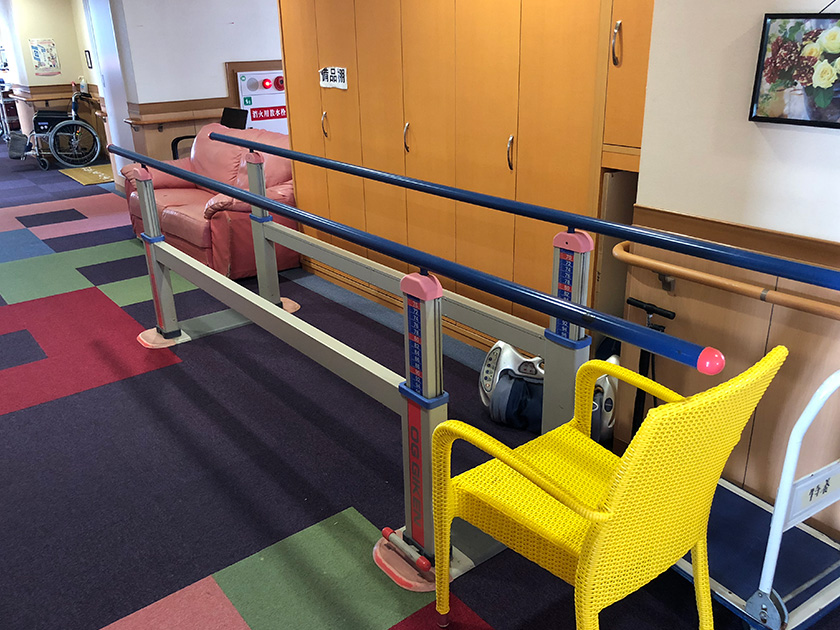 - 入所者様の心身状態に応じて、日常生活において必要な機能の減退を防止するため、理学療法士による的確な指導により計画を立案し、必要な機能訓練(平行棒内歩行訓練や起立訓練、滑車を使っての訓練、マッサージなど)を訓練指導員が定期的に実施します。