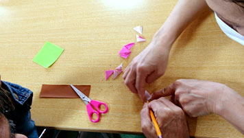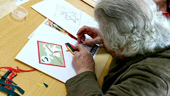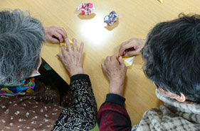 慰問に来て下さる団体様の充実と大村市ボランティアセンター様のご協力にて習字教室・折り紙教室などのクラブ活動やちぎり絵のクラブもあり、素敵な作品ができています。
